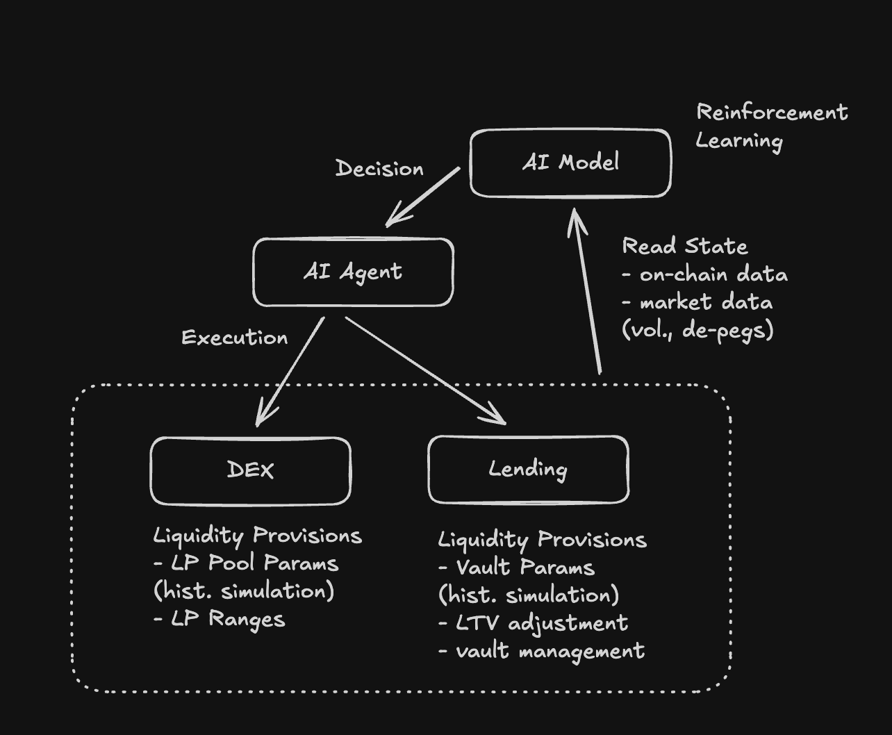 The relevant use of AI in on-chain finance is not alpha generation or dashboards. It is automated parameter adjustment, regime detection, and coordination across markets.