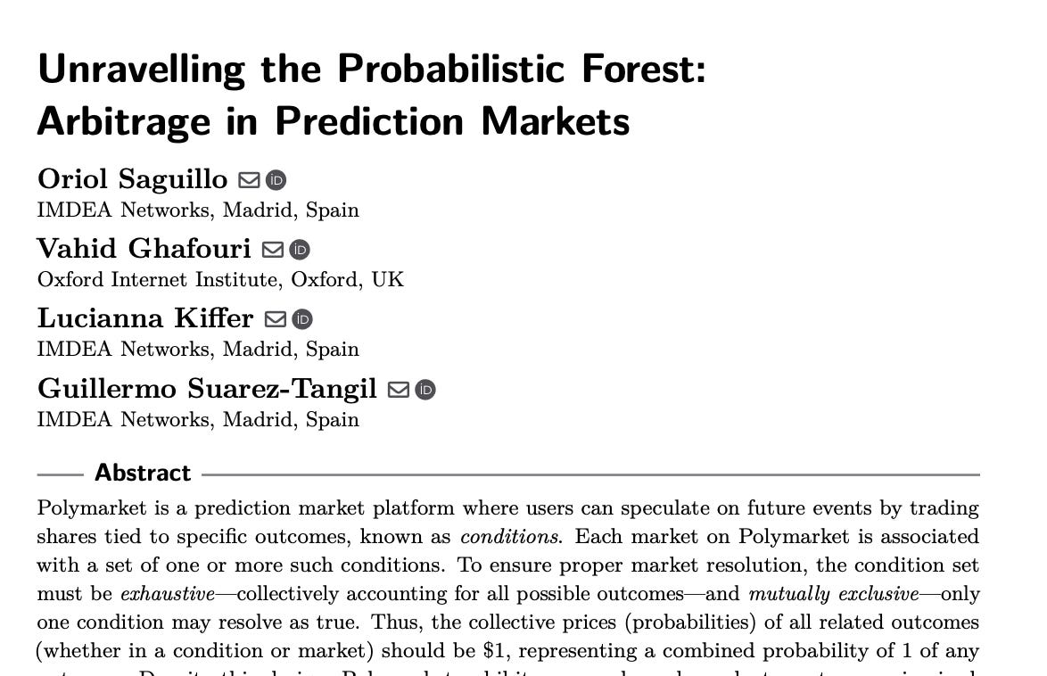 Another fascinating theme was arbitrage across prediction markets, in which blockchain users bet about the outcome of certain events such as presidential elections. Interestingly, inconsistencies regularly arise across related prediction markets, creating opportunities for guaranteed profit.